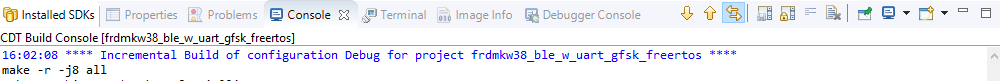 您也许想自己构建并调试演示。采用以下指南,了解如何从MCUXpresso IDE或IAR Embedded Workbench IDE中的“无线连接协议栈”中构建和调试应用示例。
