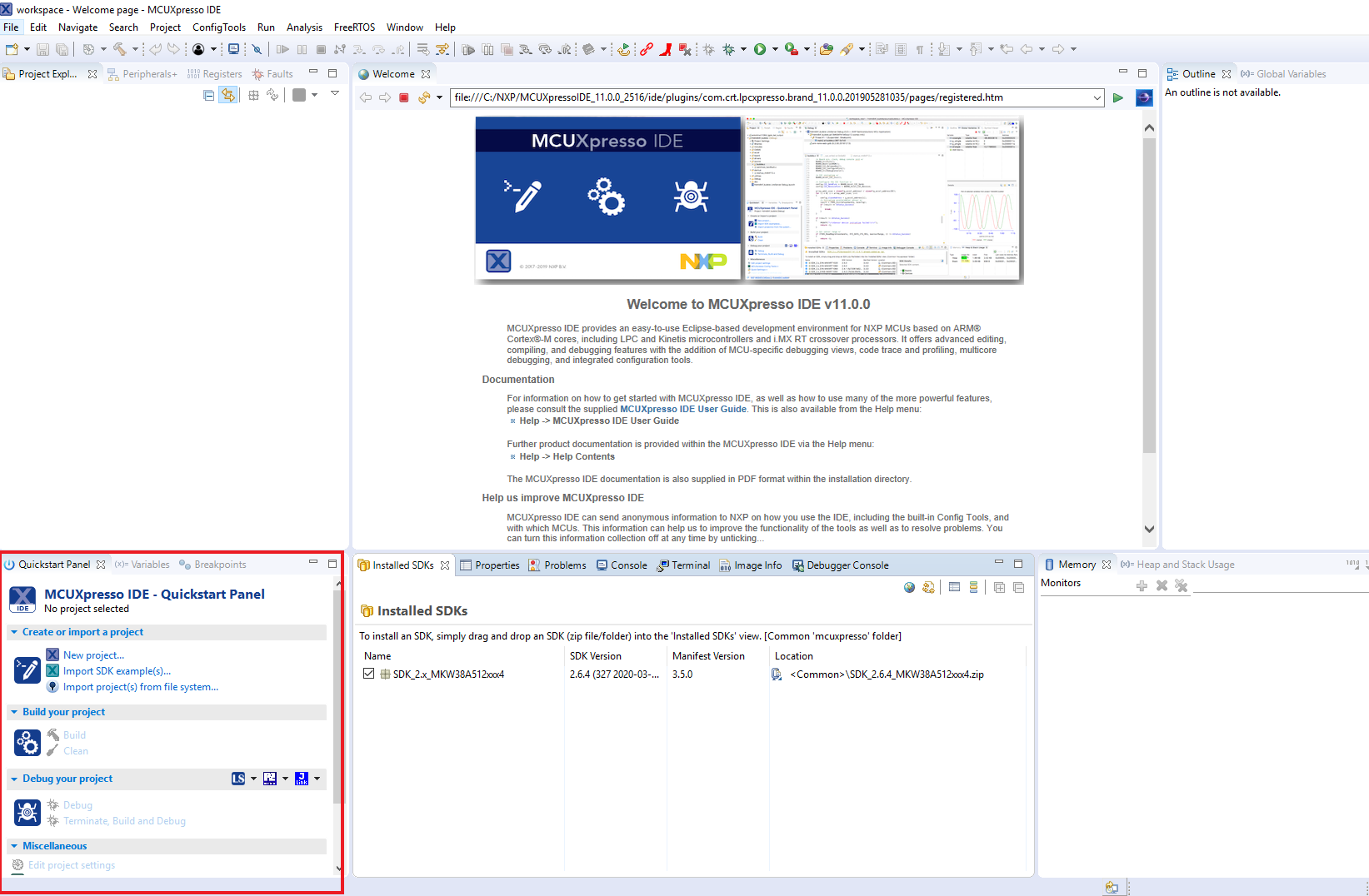 切换到MCUXpresso IDE窗口中已安装的SDK视图