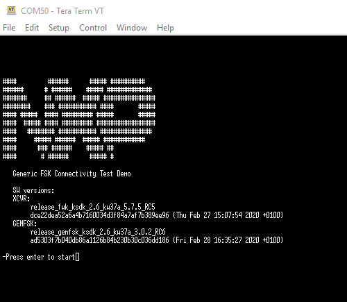 板1: 开始发送广播。短按其中一个FRDM-KW38板上的SW2按钮。连接到板的串行终端应显示以下文本