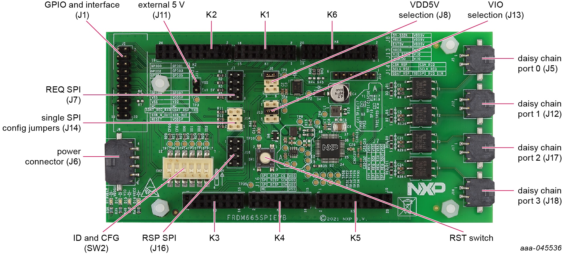 FRDM665SPIEVB可用作硬件评估工具,支持恩智浦的MC33665A器件。MC33665A是一款网关路由器,可以将TPL消息从微控制器路由到4个不同的TPL端口。它专为汽车和工业控制应用而设计。该器件可传输TPL2和TPL3消息。FRDM665SPIEVB适用性强,可快速制作MC33665A原型,实现与MCU对接的SPI接口。