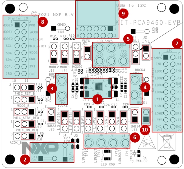 该评估板采用PCA9460电源管理IC。该套件集成了全面评估PMIC所需的所有硬件。它集成了基于FTDI的通信桥,可与PCA9460 GUI软件接口进行接口,以完全配置和控制PMIC。