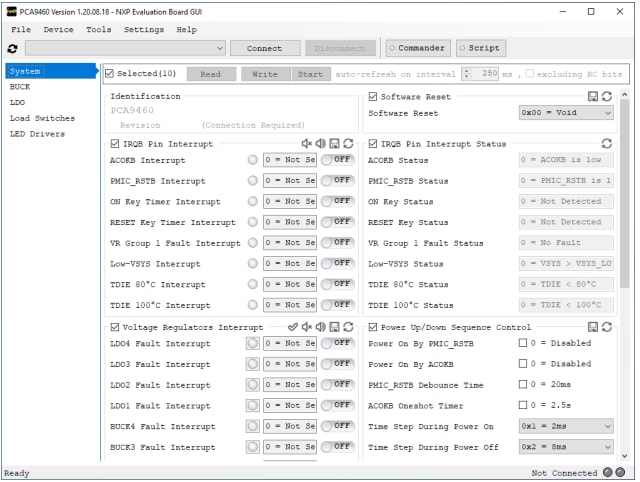 使用此评估板需先安装软件。所有列出的软件均可从评估板的信息页面KIT-PCA9460-EVB获得,您也可以直接下载KIT- PCA9460-EVB的GUI软件。