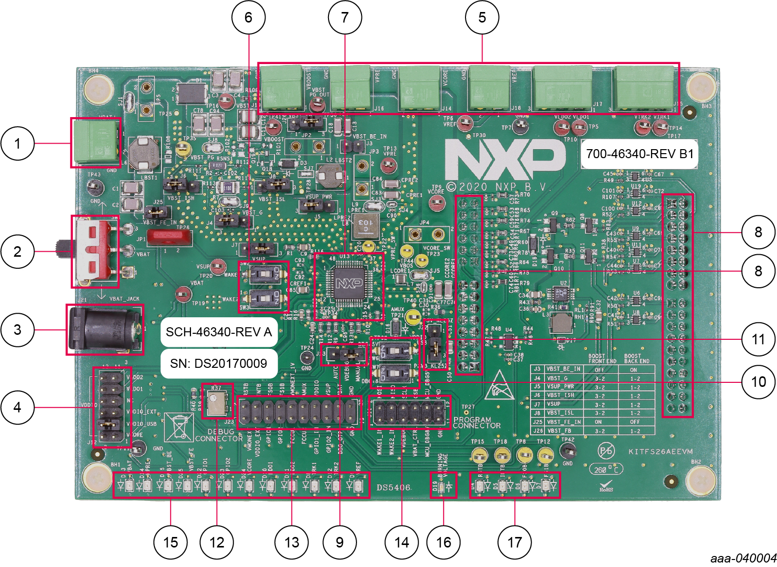 | SW1引脚2-3 | VBAT Phoenix | 由Phoenix接头供电的板 |