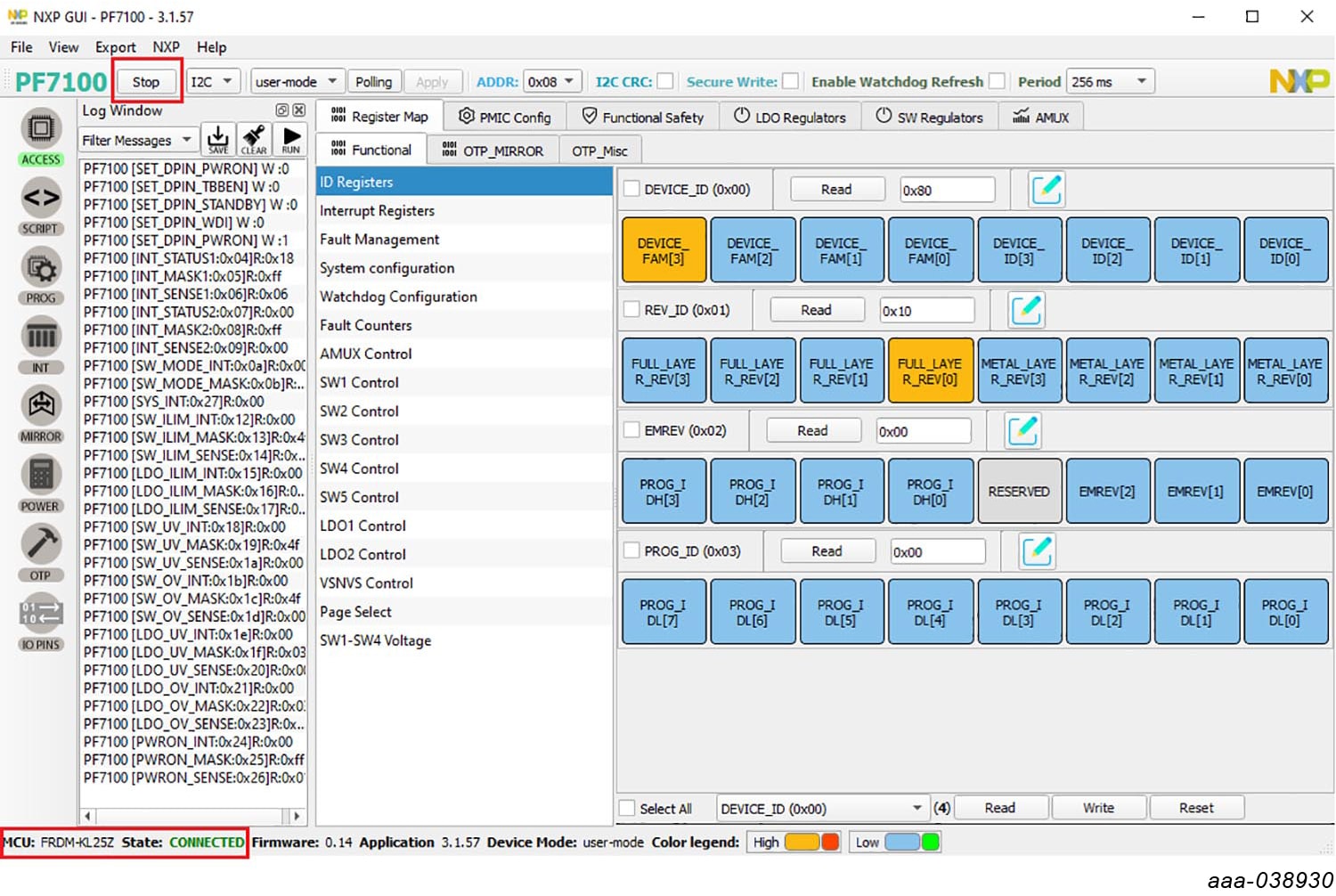 - 在第三层,KL25Z MCU提供NXPGUI固件,负责将USB通信转换为MCU指令,以控制数字I/O以及与PMIC的I2C通信。