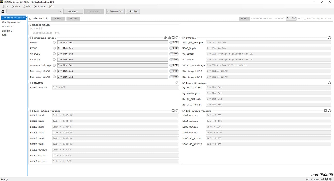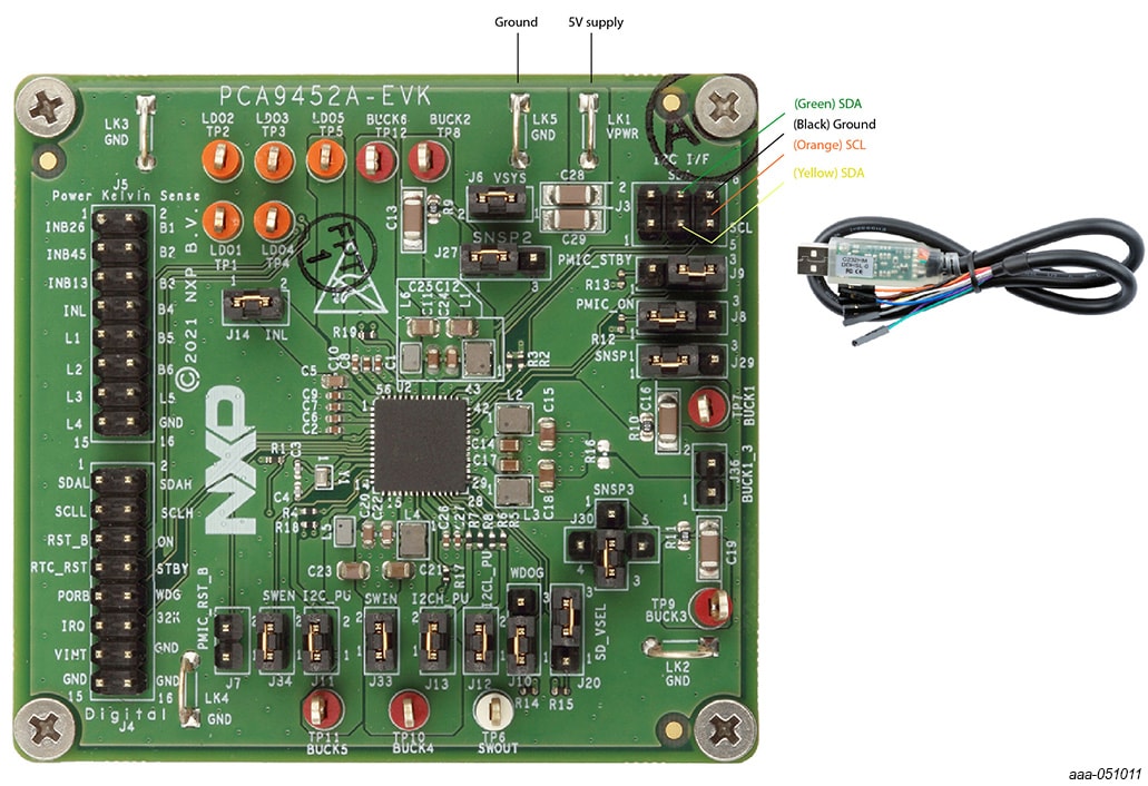 该评估板采用PCA9452A电源管理IC。该套件集成了全面评估PMIC所需的所有硬件。它集成了基于FTDI的通信桥,可与PCA9452A GUI软件接口对接,以完全配置和控制PMIC。