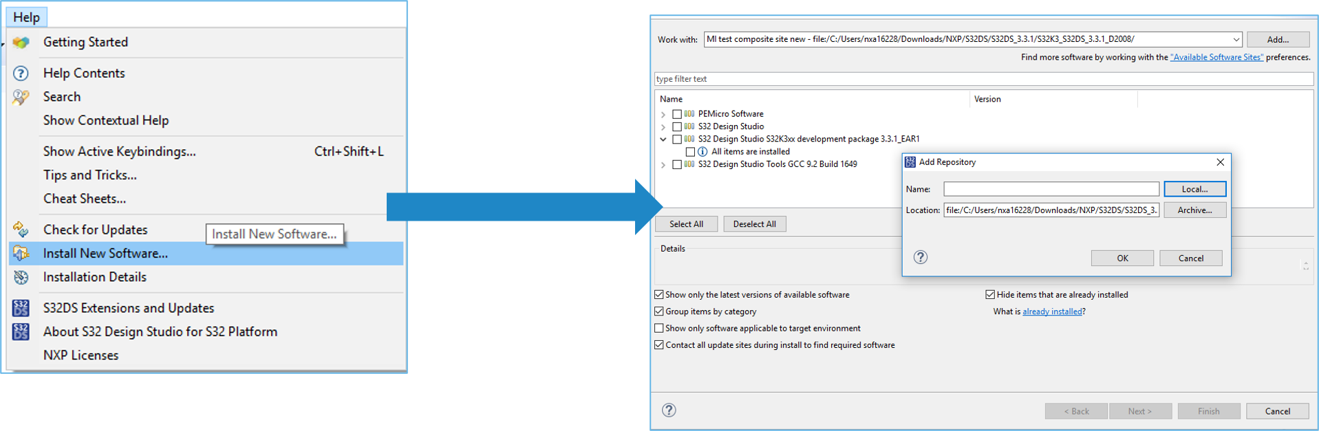 2. 通过SW32K3_S32DS_3.4.1_D2018.zip安装S32 Design Studio 3.4开发包,供离线使用,S32DS 3.4支持S32K3系列