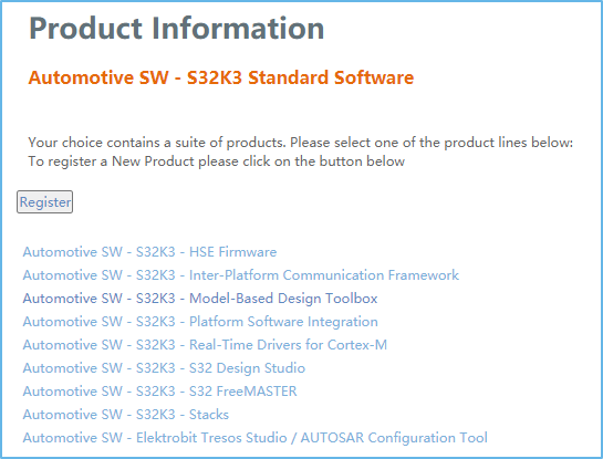 1. 使用您的恩智浦账号进入S32K3标准软件产品。