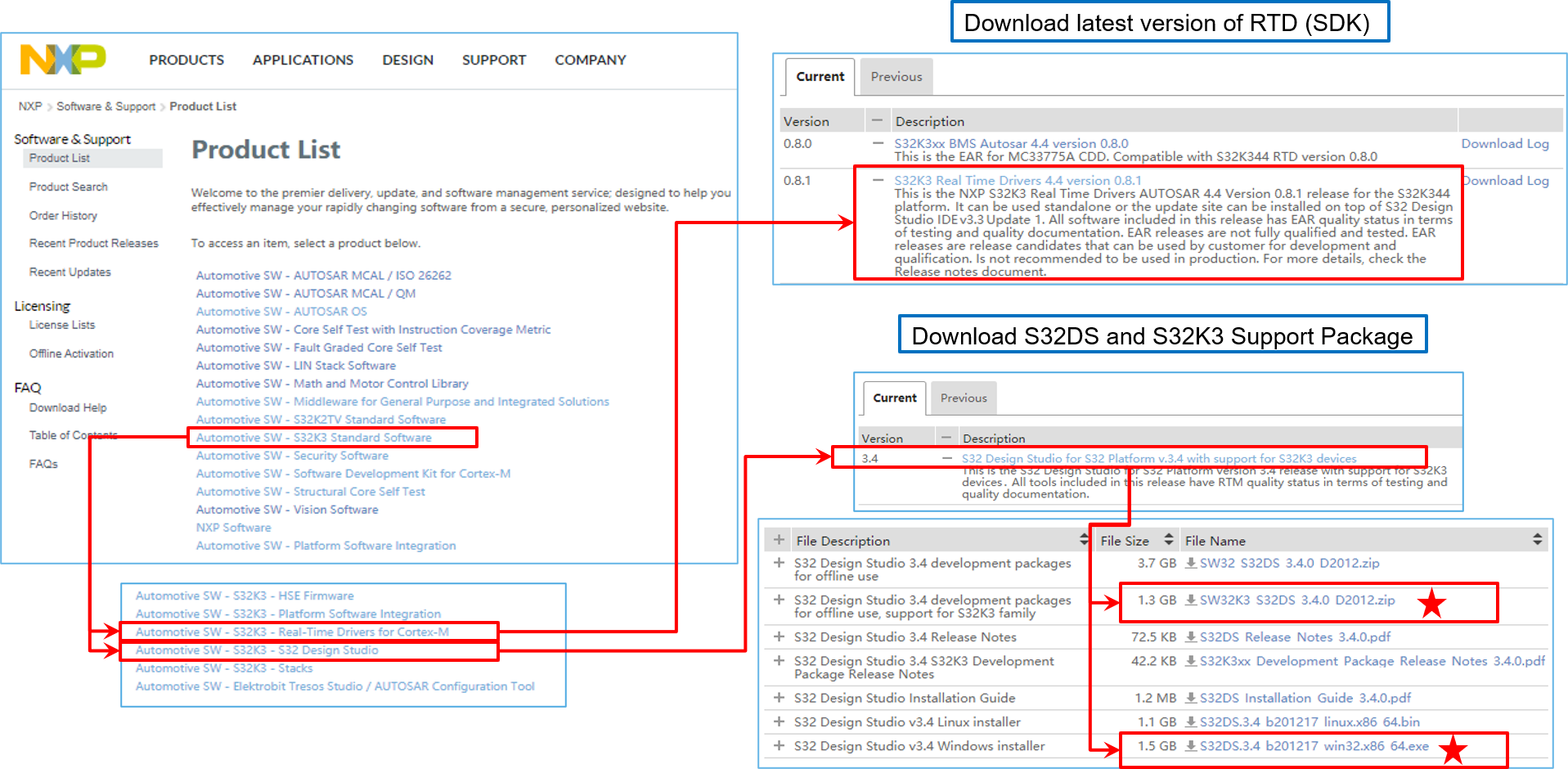 3. 下载RTD SDK、S32DS和S32K3支持包的最新版本。