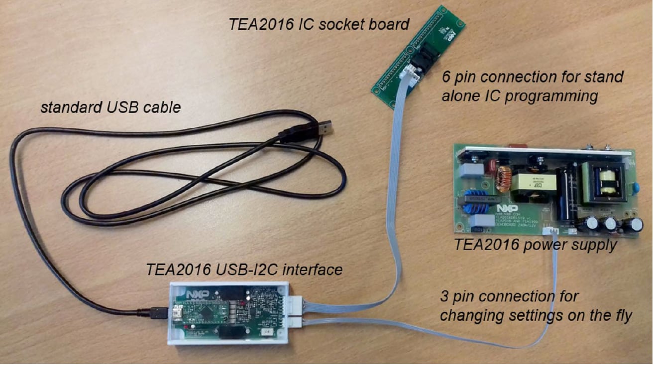 TEA2016DB1514接口板是一种开发工具,可以从计算机设置TEA2016控制器参数。恩智浦提供的Ringo TEA2016开发软件包含可安装在计算机上的图形用户界面(GUI)。