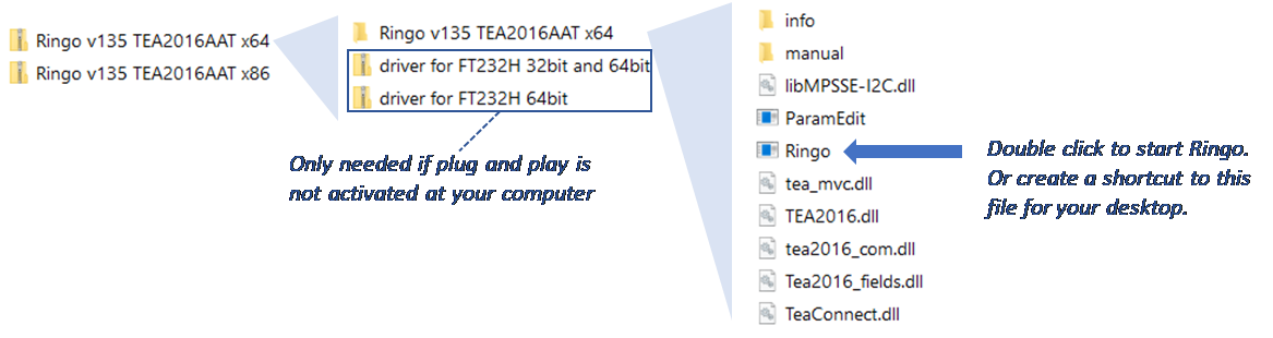 • 回答2:开始使用时需要在计算机上安装USB-I2C接口驱动程序(FT232) ,才能启用Ringo软件。为此,需要连接接口(一次)以安装驱动程序。