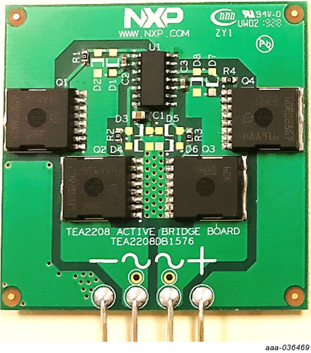 Additionally, the TEA2208T incorporates an X-capacitor discharge function. This demo board contains a TEA2208T and four low-ohmic high voltage MOSFETs.