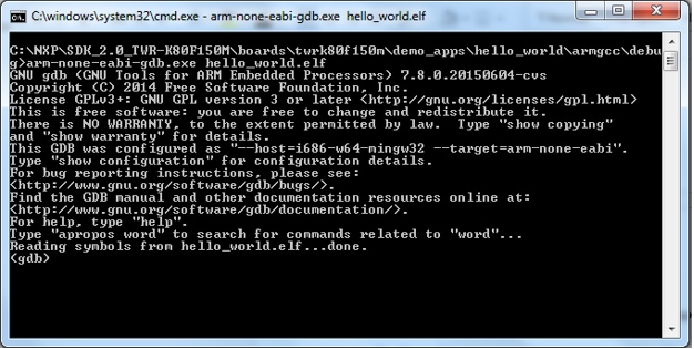 If not already running, open a GCC Arm Embedded tool chain command window. To launch the window, from the Windows operating system Start menu, go to “Programs -> GNU Tools Arm Embedded <version>” and select “GCC Command Prompt”
