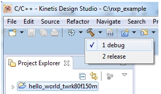 Select the desired build target from the drop-down. For this example, select the "hello_world – Debug" target