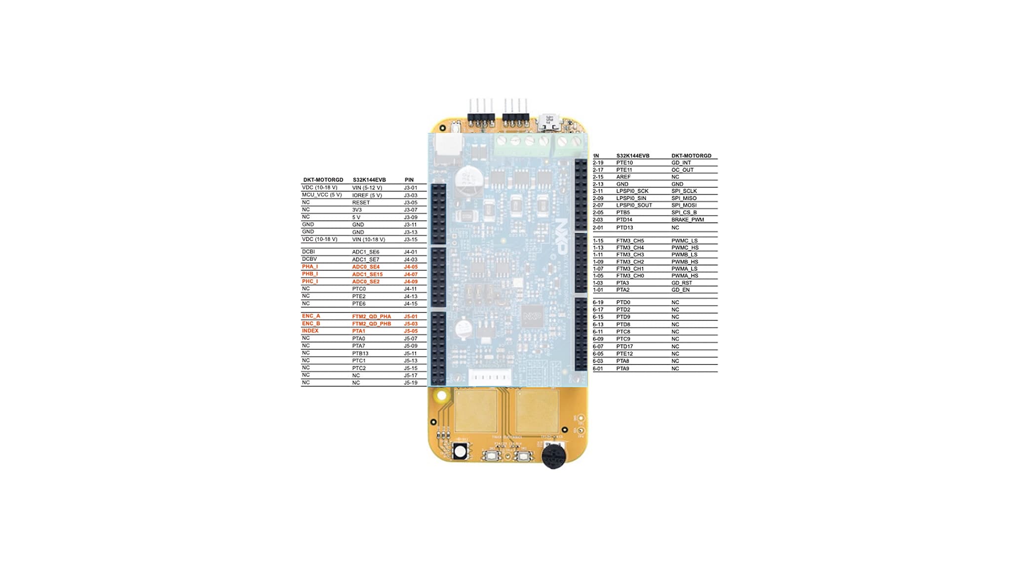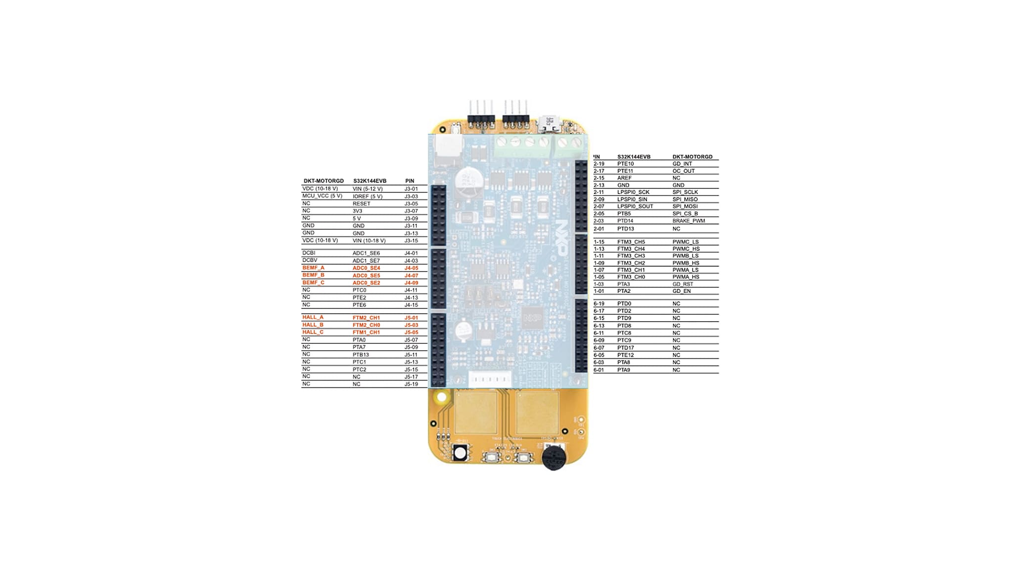 S32K144EVB通过I/O头的内部引脚控制DEVKIT-MOTORGD。