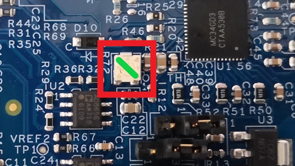 当DEVKIT-MOTOGD板通电时,该应用处于READY状态,S32K144EVB板上的LED绿灯常亮。RGB LED还指示: