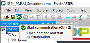 3. 要启用通信,请在FreeMASTER工具栏中,点击Go (或按下CNTRL+G)。