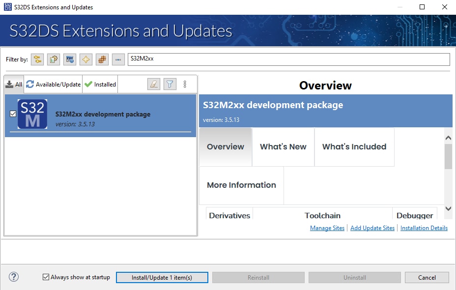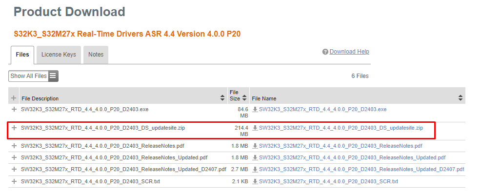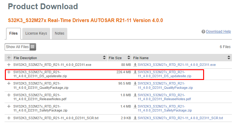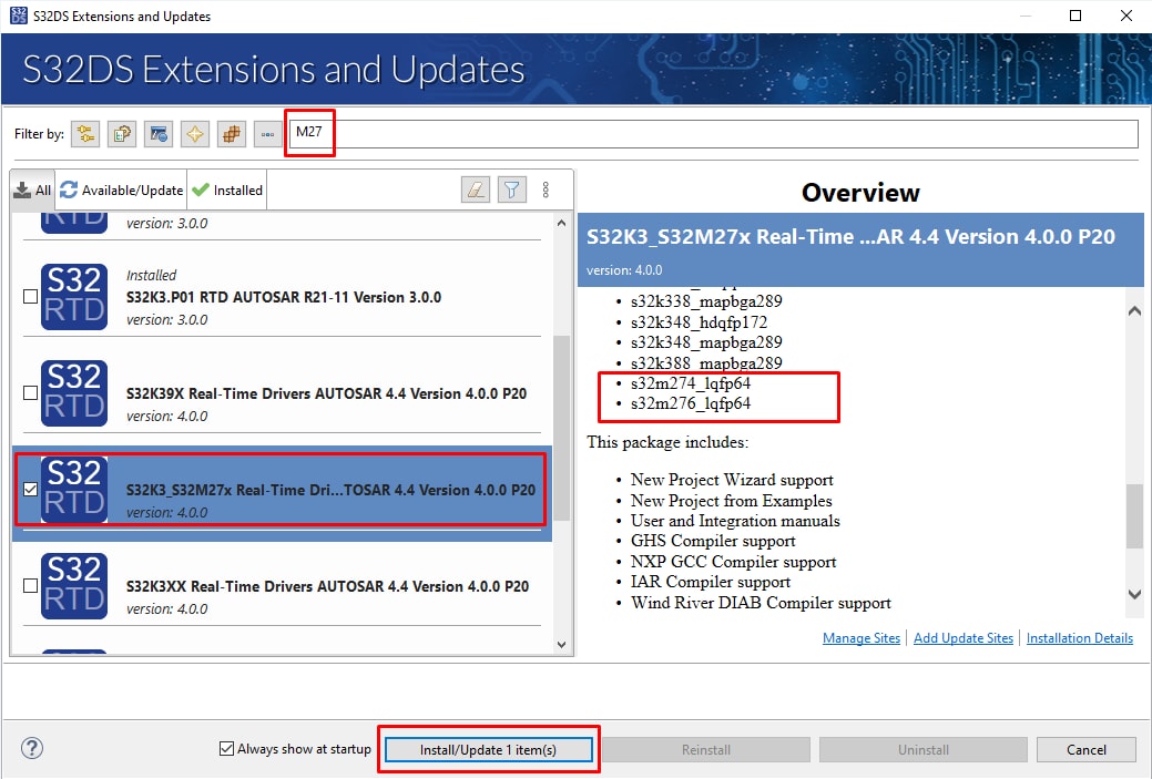 选择“Automotive SW - S32K3/S32M27x - Real-Time Drivers for Cortex-M”包,下载更新的站点文件。