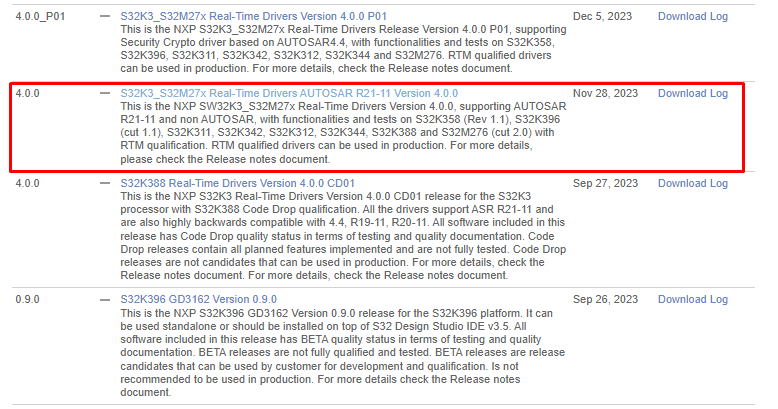 下载RTD for S32K3 and S32M27x version 4.0.0。