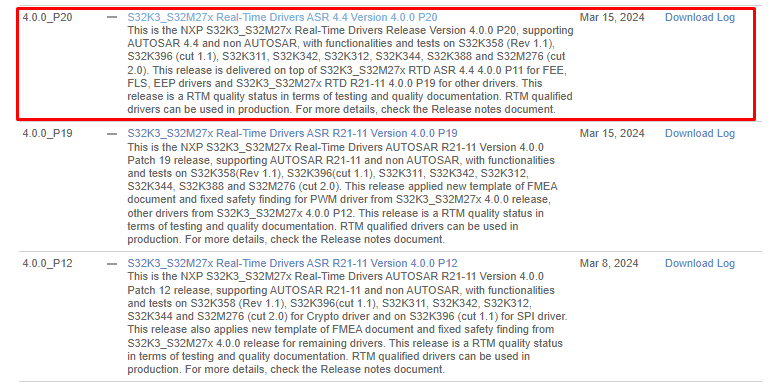 下载RTD for S32K3 and S32M27x version 4.0.0 patch P20。