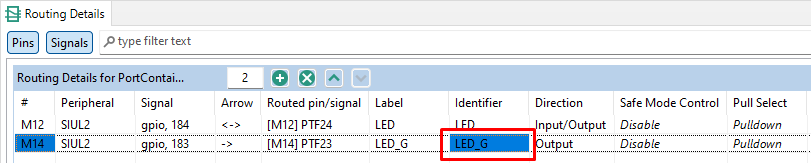 PTF23 pin (connected to Green LED) as GPIO Output PTF23 Identifier (without spaces). For example ""LED_G""