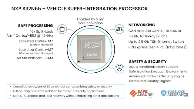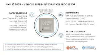 S32N55处理器集高性能实时处理、防火墙硬件安全引擎、集成多端口TSN以太网交换机、广泛的汽车通信接口以及硬件隔离和虚拟化于一身,可安全可靠地集成实时汽车功能。