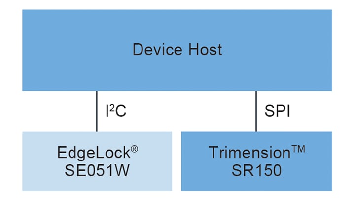 EdgeLock SE051W提供了安全测距和物联网安全所需的加密例程。它安全地存储用于安全绑定和安全测距的证书。顶部提供了一个专用的中间件包,可与主机系统中的Trimension SR150轻松集成。EdgeLock SE051W还可以与设备中运行的其他物联网应用共享,例如安全云注册、设备到设备身份验证、设备完整性保护、认证和原产地证明。