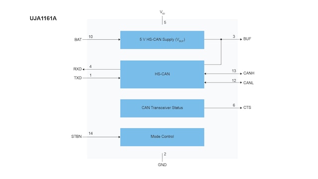 | UJA1162ATK/0 | X | X | X | 内部用作自供电CAN | INH | 5 Mbps | |||||