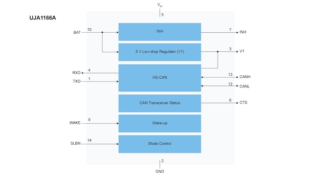 | UJA1162ATK/0 | X | X | X | 内部用作自供电CAN | INH | 5 Mbps | |||||