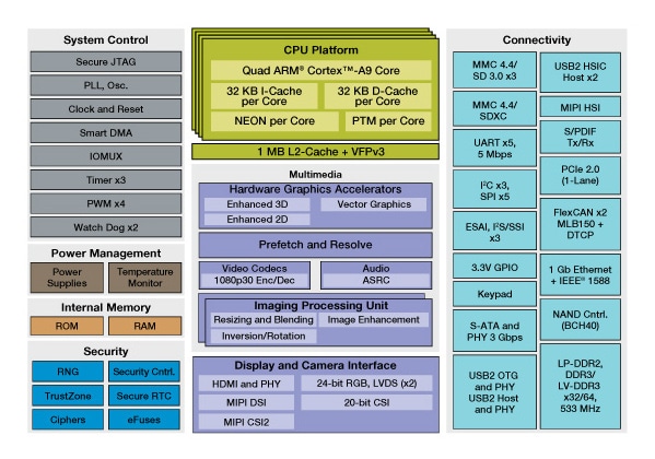 i.MX 6QuadPlus系列可显著增强图形和存储器性能,并与广泛的i.MX 6处理器引脚兼容。此器件是四核Arm® Cortex®-A9平台,运行频率高达1.2 GHz*,带有1 MB L2缓存,先进图形,预取和解析引擎以及优化的64位DDR3或2通道、32位LPDDR2支持。这个系列的器件集成了FlexCAN、MLB总线、PCI Express®和SATA-2,具有卓越的连接性,同时集成了LVDS、MIPI显示器端口、MIPI摄像头端口和HDMI v1.4,是需要较高图形性能的高级消费电子、汽车和工业多媒体应用的理想多核平台。