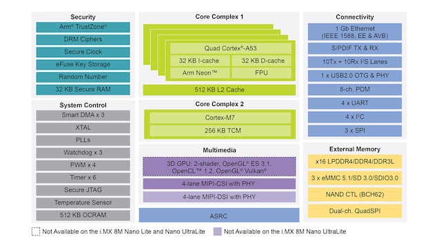 | ** i.MX 8M Nano UltraLite应用处理器** | i.MX 8M Nano Lite应用处理器 | i.MX 8M Nano应用处理器 | |