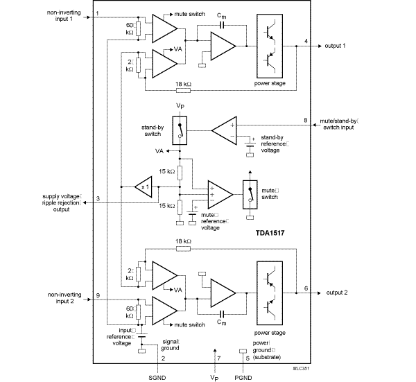TDA1517是采用塑料单列直插中等功率封装与散热片(SIL9MPF)、塑料矩形弯曲单列直插中等功率封装与散热片(RBS9MPF)或塑料散热双列直插封装(HDIP18)的集成式B类双输出放大器。该器件主要开发用于多媒体应用。