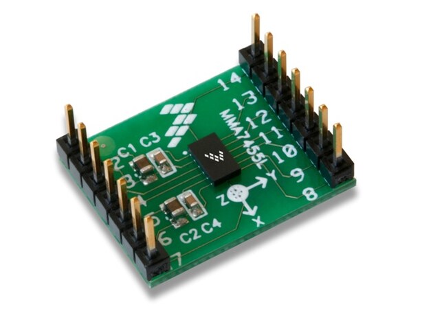 The MMA745XL 3-axis digital output accelerometer has been placed on a Printed Circuit Board (PCB) with access to all the pins to allow evaluation of the product by integrating it into a specific design application. This allows the flexibility to evaluate a device in its own hardware and software environment.