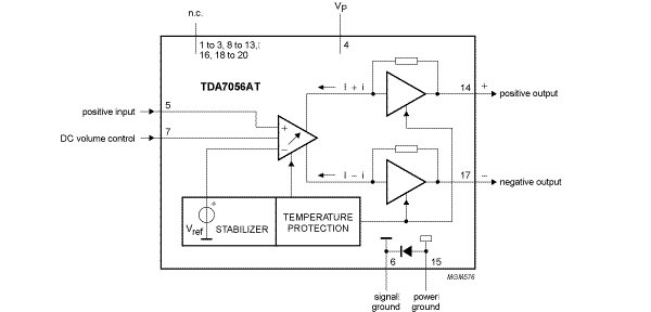TDA7056AT是单声道桥接式负载BTL输出放大器,采用直流音量控制。其设计用于电视和显示器,也适合电池供电的便携式录音机和收音机。该器件采用20引脚小型封装。
