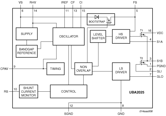 UBA2025是一款高压功率IC,用于驱动和控制紧凑型荧光灯(CFL)。它包含一个半桥电源电路、一个振荡器和一个启动、预热、点燃、灯点亮和保护控制电路。
