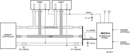 NE57814可为DDR存储器总线终端提供电源。相比之前的开关解决方案,它极大地减少了器件数、电路板空间以及总系统成本。NE57814集成独立的电源针脚(VD),可进一步降低功耗;另外还为能效敏感的便携式应用提供低功耗待机模式。