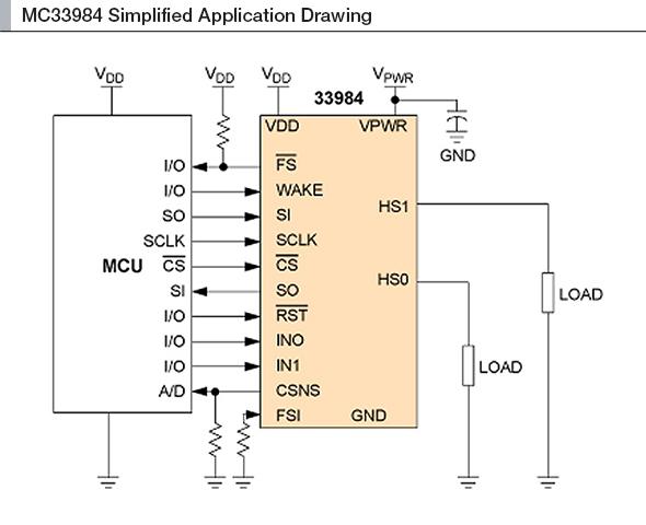 33984是一款带自我保护功能的双4.0 mOhm硅开关,用于取代电源管理应用中的机电式继电器、熔断器和分立器件。33984专为恶劣的环境而设计,拥有自恢复功能。该器件适用于具有高浪涌电流的负载,以及电机和所有类型的电阻性和电感性负载。