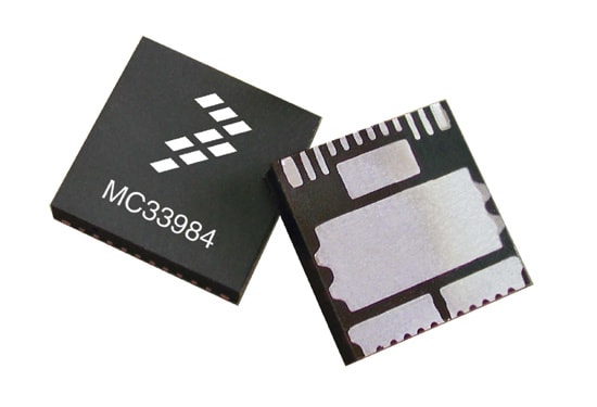 33984采用12x12mm无引脚功率增强型PQEN封装,标签外露。