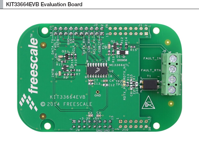 KIT33664EVB is no longer manufactured but is replaced by KIT33664AEVB. This Evaluation board features the MC33664TL a transceiver physical layer transformer driver designed to conveniently interface a microcontroller to a high speed isolated communication network. MCU SPI data bits are directly converted to pulse bit information and transferred to the bus network.