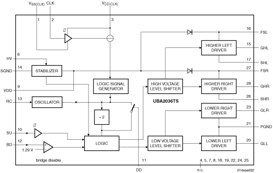 封装信息 (1) plastic shrink small outline package; 28 leads; body width 5.3 mm[SOT341-1] PDFFeb 8, 2016版本更新 1.0 支持信息 (1) Footprint for reflow soldering[SSOP-TSSOP-VSO-REFLOW] PDFOct 8, 2009版本更新 1.0 数据手册 (1) Full bridge control IC for HID automotive lighting[UBA2036TS] PDFDec 14, 2015版本更新 1.0