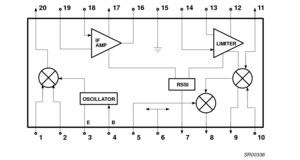 SA605是高性能单片低功耗FM IF系统,集成了一个混频器/振荡器、两个限幅中频放大器、正交检波器、静音、对数接收信号强度指示器(RSSI)以及电压调节器。SA605结合了Signetics的功能?SA602和SA604A,具有更高的混频器输入截点、更高的IF带宽(25MHz)和温度补偿RSSI以及限幅器,可实现更高性能的应用。SA605采用20引脚双列直插式塑料、20引脚SOL(表面贴装微型封装)和20引脚SSOP(紧缩小型封装)。