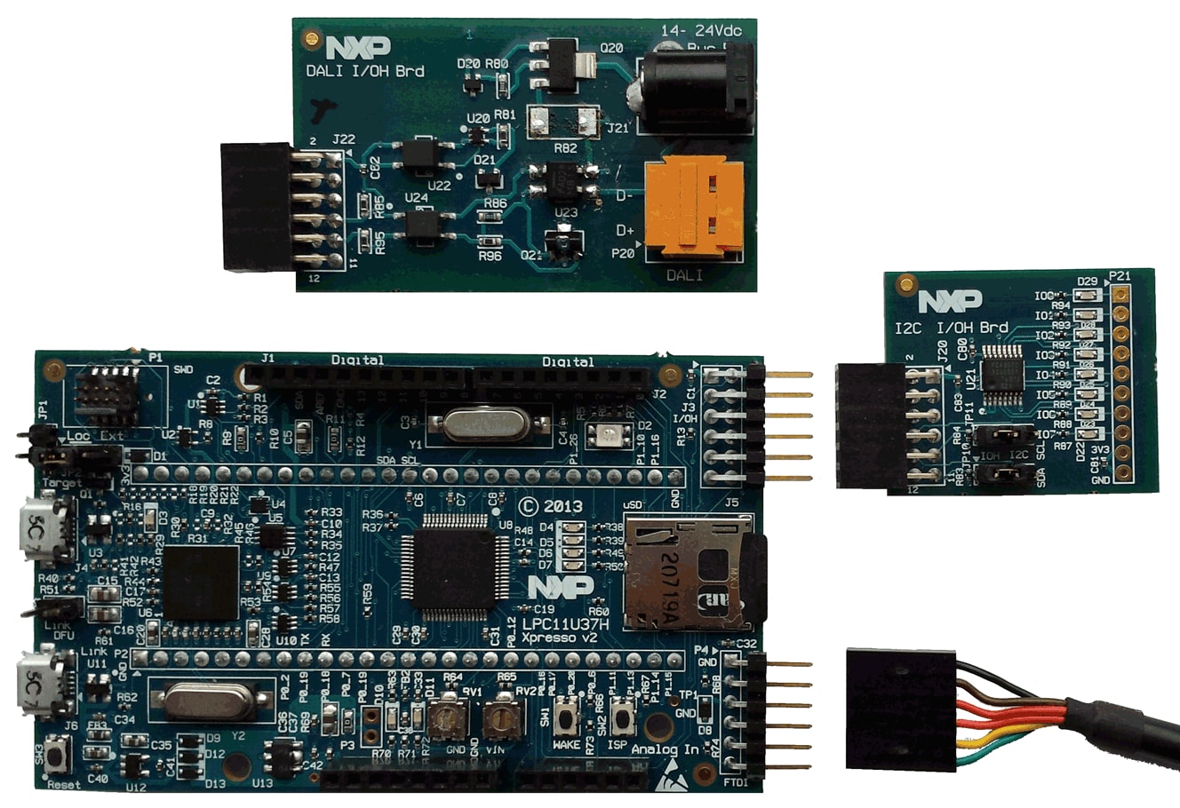 LPCX11U37H I/O处理器套件使用PMOD接口连接,用于专门的I²C和DALI子卡,LPCXpresso侧接头为是公头而非母头。LPCXpresso11U37H单一版本(2014年7月推出)不具有PMOD接头,因此可添加一个接头,与标准的PMOD兼容卡共同使用。