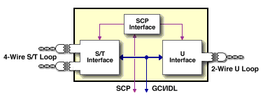 The U-interface uses 2B1Q line coding. The device offers both GCI and IDL/SCP interfaces for compatibility with previous designs based upon the MC145574A S/T-Interface Transceiver and the MC145572 U-Interface Transceiver chip set. The SCP serial interface allows connection to the extensive family of NXP controllers.