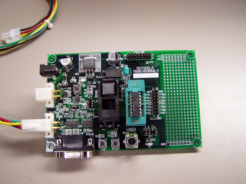 NXP®’s advanced MC68HC908QL4 evaluation board, M68EVB908QL4, contains everything a designer needs to develop and evaluate the MC68HC908QL4 family applications. This comprehensive kit includes an evaluation board that uses the MC68HC908QL4 on chip LIN interface controller (SLIC) module.