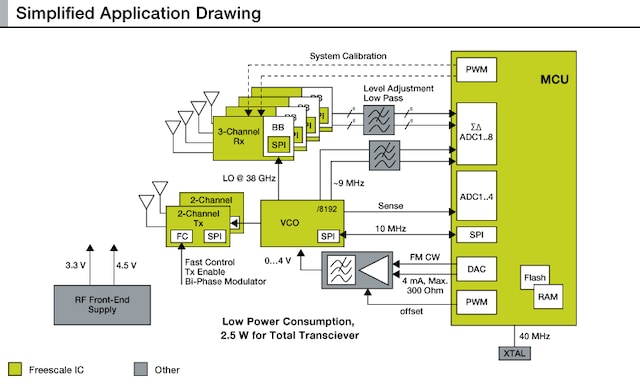 The MR2001 is a high-performance 77 GHz radar transceiver. It is scalable for multi-channel operation enabling a single radar platform with electronic beam steering and wide field-of-view to support long, mid-, and short-range radar applications for auto safety, communications infrastructure, and industrial systems. The MR2001 supports fast modulation with simultaneous channels enabling spatial resolution and detection accuracy across a wide field-of-view and consumes minimal power. When combined with the MPC577xK MCU, it offers a complete system-level radar solution for ADAS applications.
