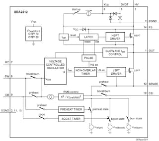 UBA2212系列集成电路是一系列高压单片IC,用于驱动半桥配置中的紧凑型荧光灯(CFL)。此系列提供了简便的照明负载集成方法,适用于各种荧光灯管和市电电压。