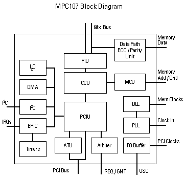 The MPC107 PCI Bridge/Integrated Memory Controller provides a bridge between the Peripheral Component Interconnect, (PCI) bus and Our MPC603e, MPC740, MPC750, MPC745, MPC755, MPC7400 and MPC7410 Power Architecture host processors. PCI support allows system designers to design systems quickly using peripherals already designed for PCI and the other standard interfaces available in the personal computer hardware environment. The MPC107 provides many of the other necessities for embedded applications including a high-performance memory controller and dual processor support, 2-channel flexible DMA controller, an interrupt controller, an I 2 O-ready message unit, an inter-integrated circuit controller (I 2 C), and low skew clock drivers. The MPC107 contains an Embedded Programmable Interrupt Controller (EPIC) featuring five hardware interrupts (IRQ’s) as well as sixteen serial interrupts along with four timers. The MPC107 uses an advanced, 2.5-volt HiP3 process technology and is fully compatible with TTL devices.