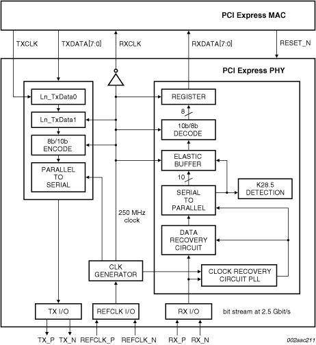 PX1011B是一款高性能低功耗的单通道PCI Express电气物理层(PHY),可处理低级别PCI Express协议和信令。PX1011B PCI Express PHY兼容PCI Express基本规格、版本1.0a和版本1.1。PX1011B附带的功能包括时钟和数据恢复(CDR)、数据串行化和解串、8b/10b编码、模拟缓冲、弹性缓冲和接收器检测,并为媒体访问控制(MAC)层器件提供卓越的性能。