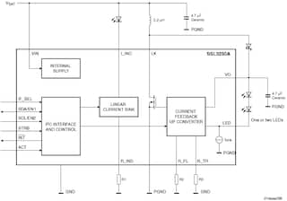 SSL3250A是一款闪光灯LED驱动器,主要用于电池供电的移动设备,如移动电话和PDA。升压转换器提供高性能并以超过85 %的效率和最高500 mA电流驱动单、双高亮度LED。驱动器可编程为以闪光、照明或指示灯/视频打开模式工作。