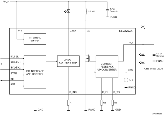 小型硅尺寸和1.2 MHz的高内部切换频率大大缩小了SSL3250A的占用空间,使其非常适合空间有限的移动电话,且只需要四个外部组件。设计SSL3250A时,考虑到要在安全工作极限内驱动高功率闪光灯LED,因此可通过I2C接口对超时功能进行编程,以防止LED超负荷。由于移动电话的特定要求,通过使用可选外部设置电阻可在RF传输期间快速降低闪光电流。