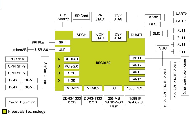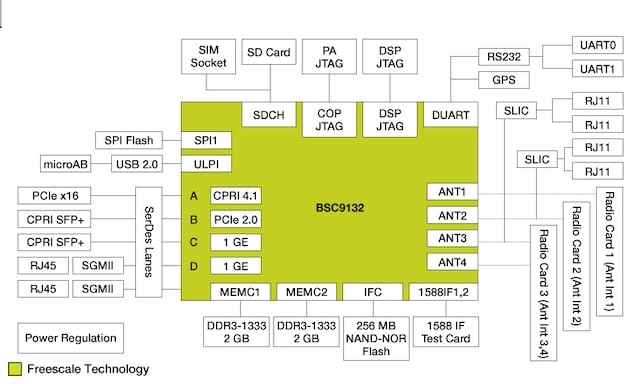 The integrated BSC9132 SoC is targeted for picocell base stations in the small cell base station market and combines the e500 Power Architecture® CPU and SC3850 StarCore® DSP with MAPLE-B2P baseband acceleration processing elements. 三者结合一起可提供高性能、高性价比的集成解决方案,解决微微小区基站的所有处理需求。